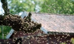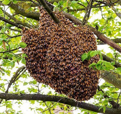 A bee swarm is a round or oval mass of bees seeking a place to start a new nest under the direction of a queen. Swarming bees are usually placid and unlikely to sting when left undisturbed. If you come across a bee swarm, remain calm and stay out of their path. Swarms of bees will generally move on in a couple of hours when they have found a suitable dwelling to make a nest. Please DO NOT spray the bees with insecticide, as this will irritate them and may cause them to sting.